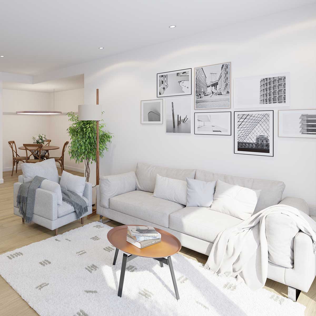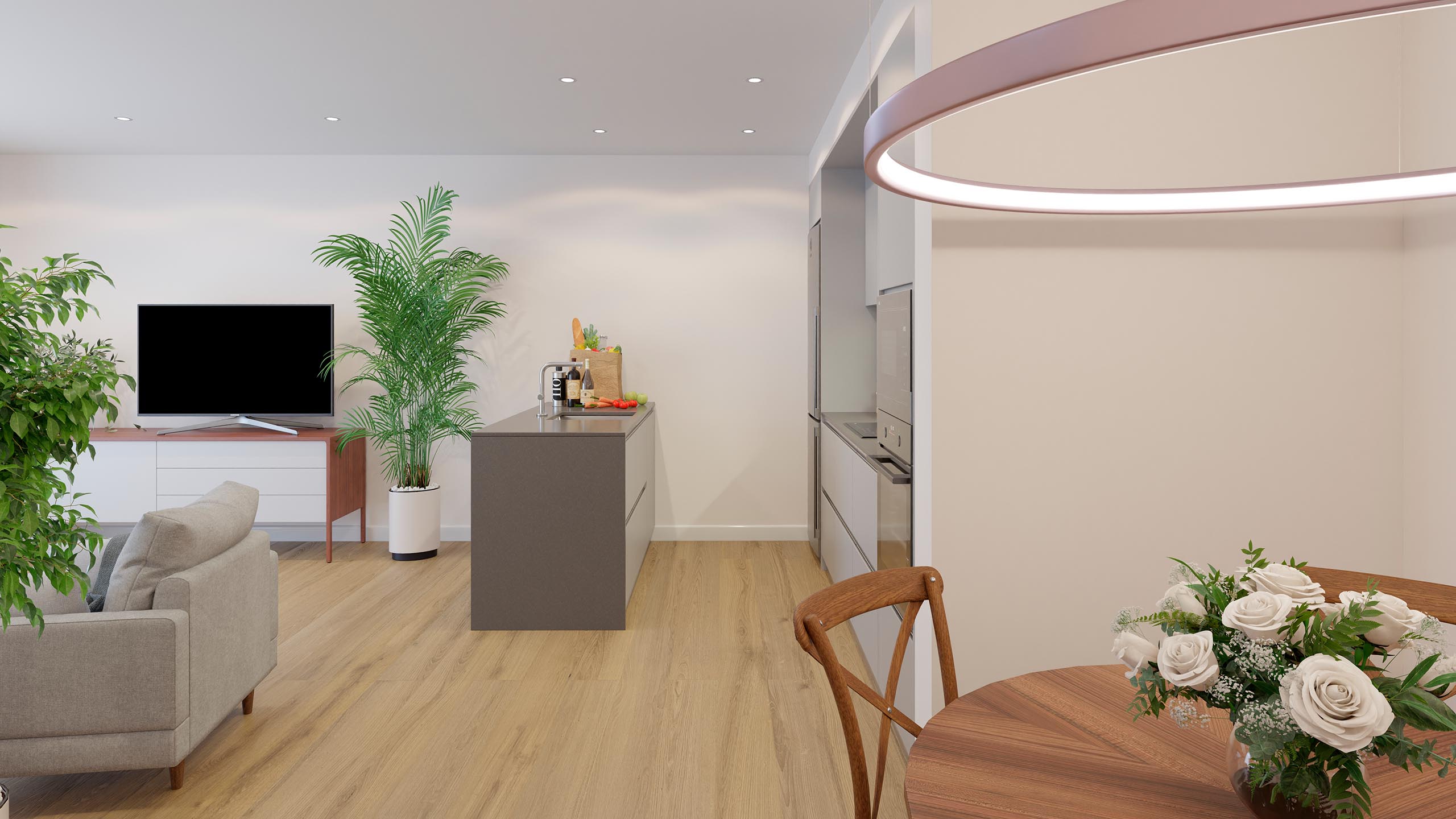 La luminosidad se convierte en protagonista gracias a una orientación estudiada y a unos espacios abiertos que permiten que la luz natural fluya de manera continua a lo largo del día, llenando cada estancia de calidez.